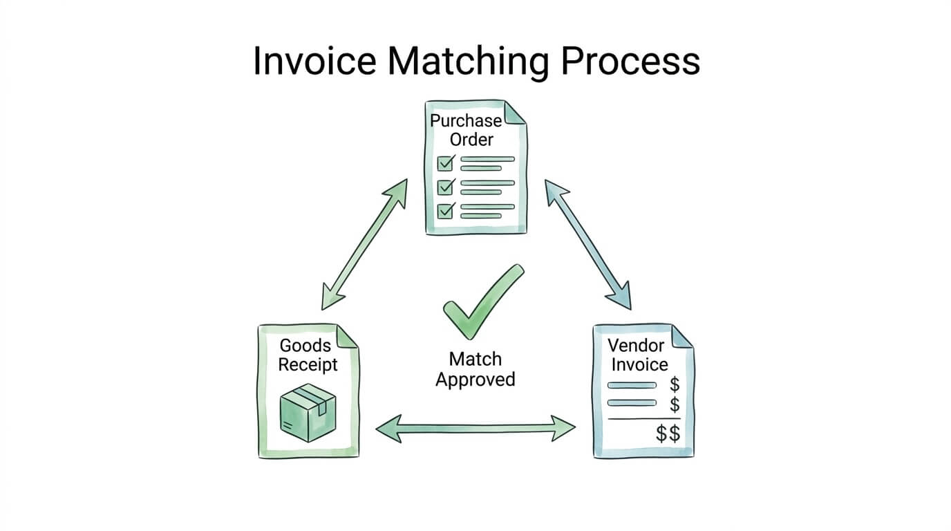 Invoice matching is the accounts payable control process that verifies a vendor's invoice against your company's own records before approving payment. It confirms that what you are being charged for matches what you ordered, what you received, and what you agreed to pay.